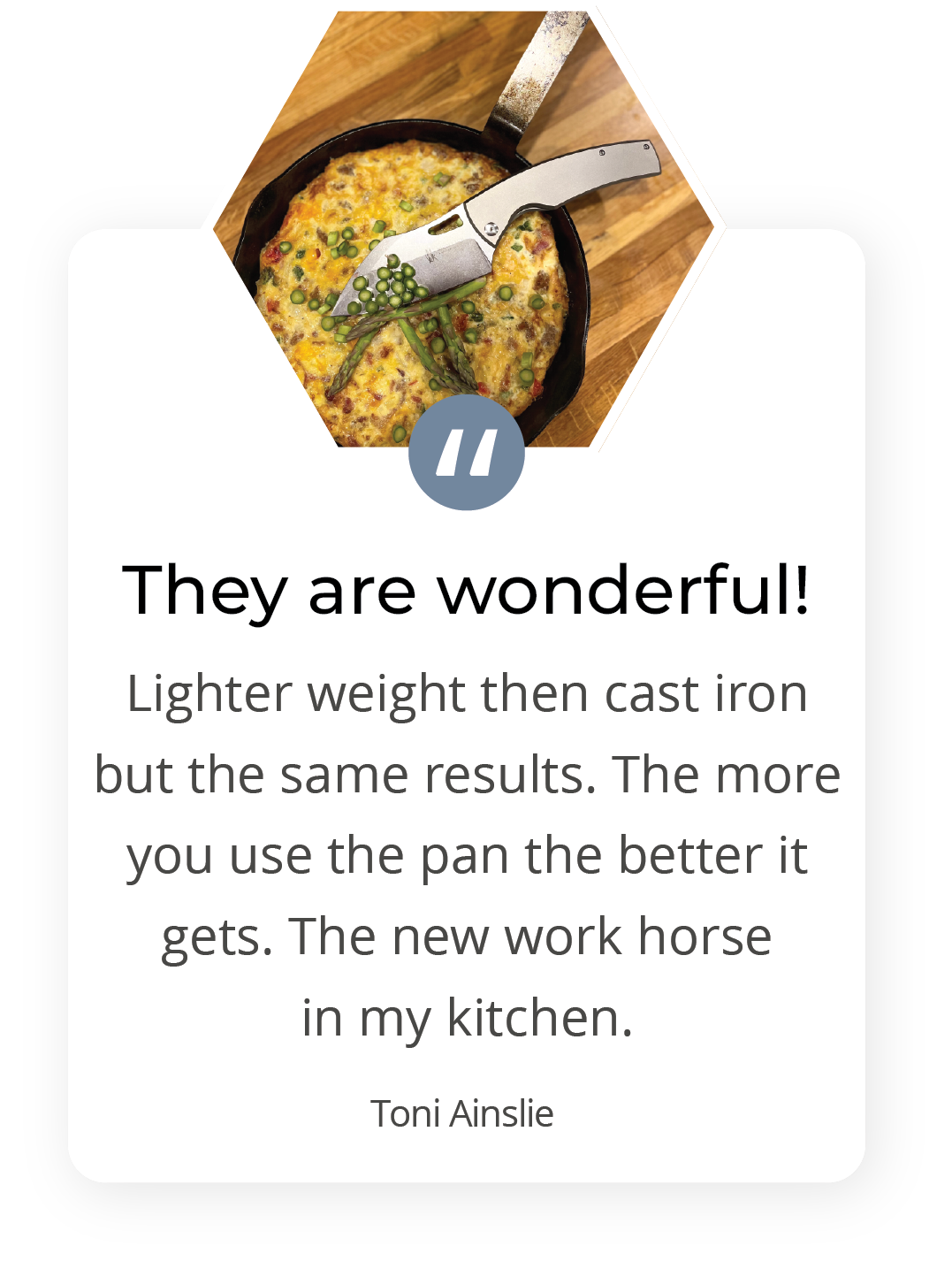 Our carbon steel pans are lighter and less porous than cast iron cookware, but they offer the same benefits you enjoy from cast iron cooking products.